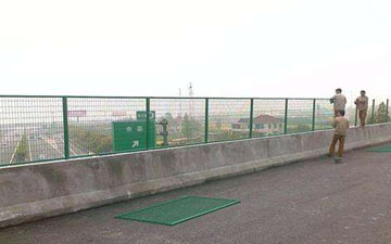 橋梁防拋網(wǎng)(又名橋梁防護(hù)網(wǎng)、橋梁護(hù)欄網(wǎng),橋梁隔離柵)是由優(yōu)質(zhì)低碳鋼絲經(jīng)過拉拔、編織、焊接、浸塑等一系列工藝加工而成,它廣泛用于市政高架橋,高速公路立交橋, 鐵路立交橋,過街天橋,港口碼頭,畜牧,養(yǎng)植等的護(hù)欄防護(hù)。